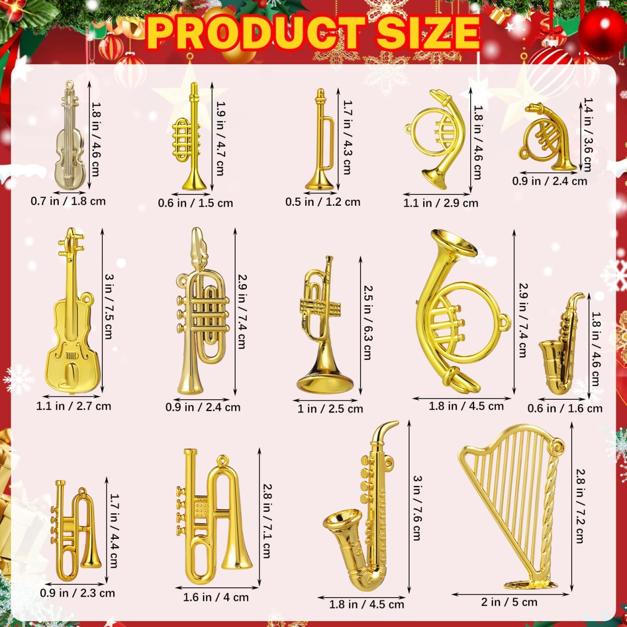 Festive Christmas Musical Horn Decor:Add holiday cheer to trees or holiday displays with these tiny instrument treasures our Christmas musical horn decor(also known as fake instruments – inspired ornaments). For a cohesive, filled music seasonal look, pair with trompetas musicales- style toy instruments, mini violinaccents, or miniature guitarcharms