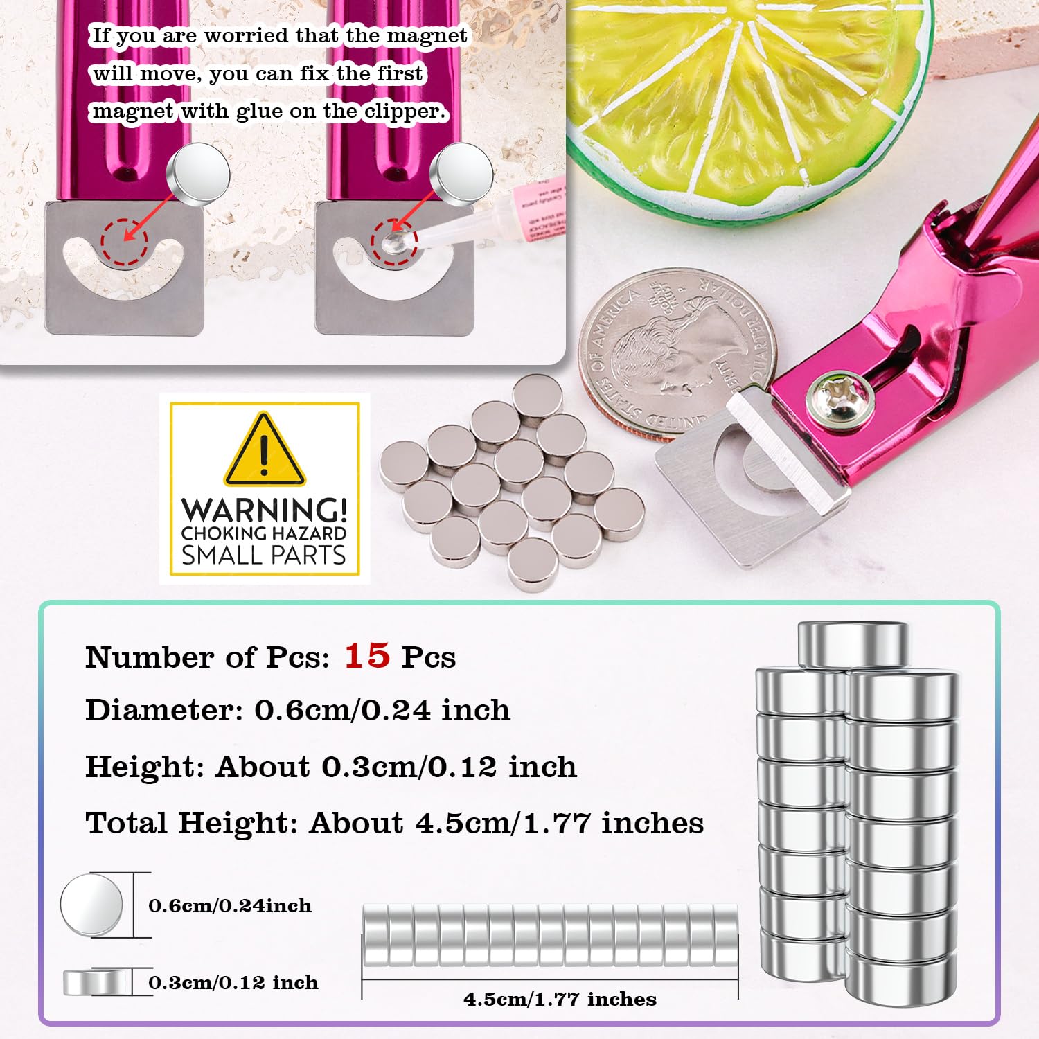Powerful Magnet Sizers : Easiest nail hack to get your tips the same length in seconds!Our magnets have a total length of 1.6 inches, the height of each pcs is 0.11 inches, you can adjust the desirable length by using different numbers of magnets.If you are worried that the magnets will move, you can fix the first magnet with glue on the clipper.