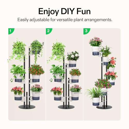 Customizable Setup: Fully adjustable to fit different plants, ensuring each plant get enough fresh air; You can decide the placement of each planter and the total height of each pole, creating versatile arrangement styles for a stunning visual display