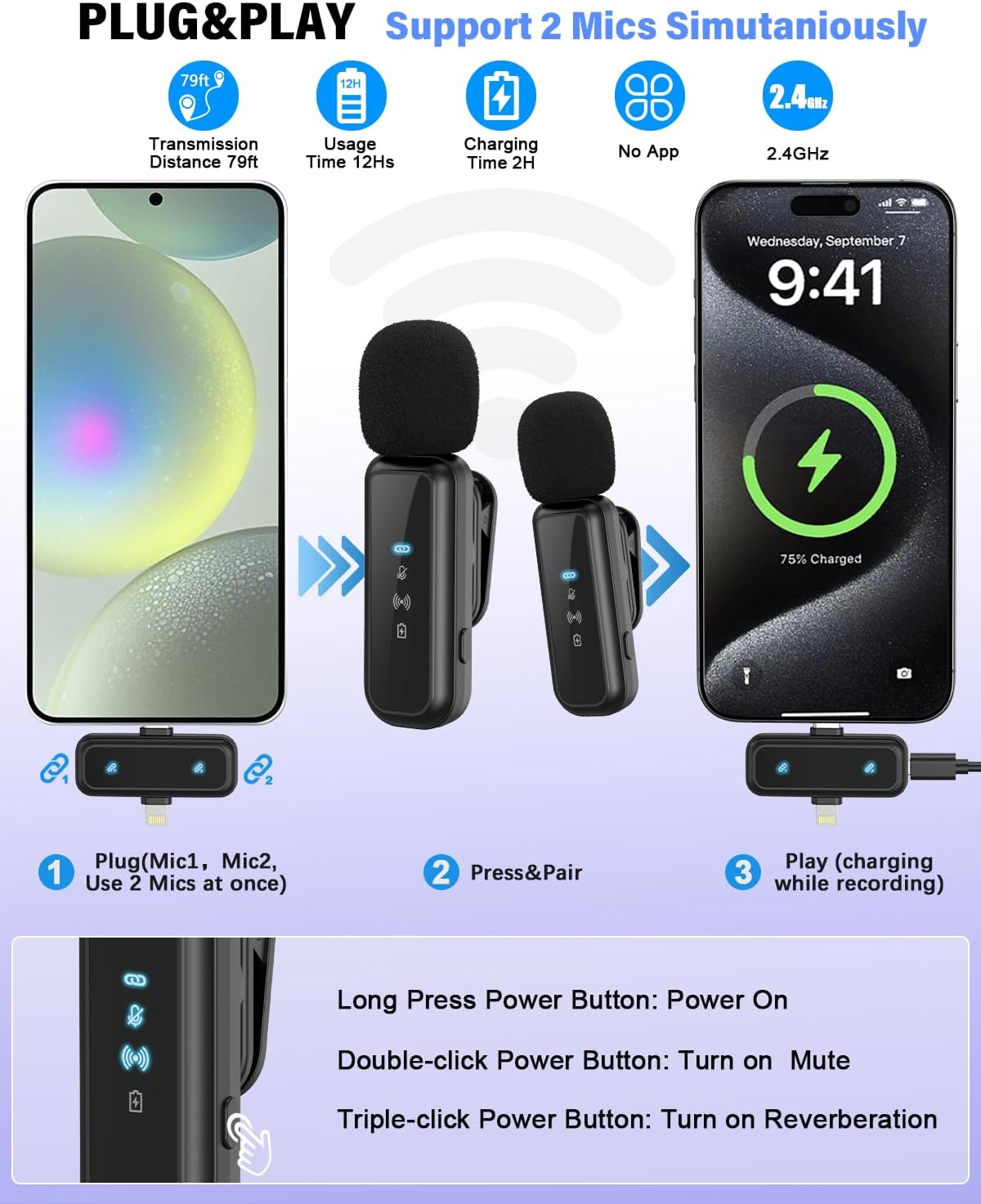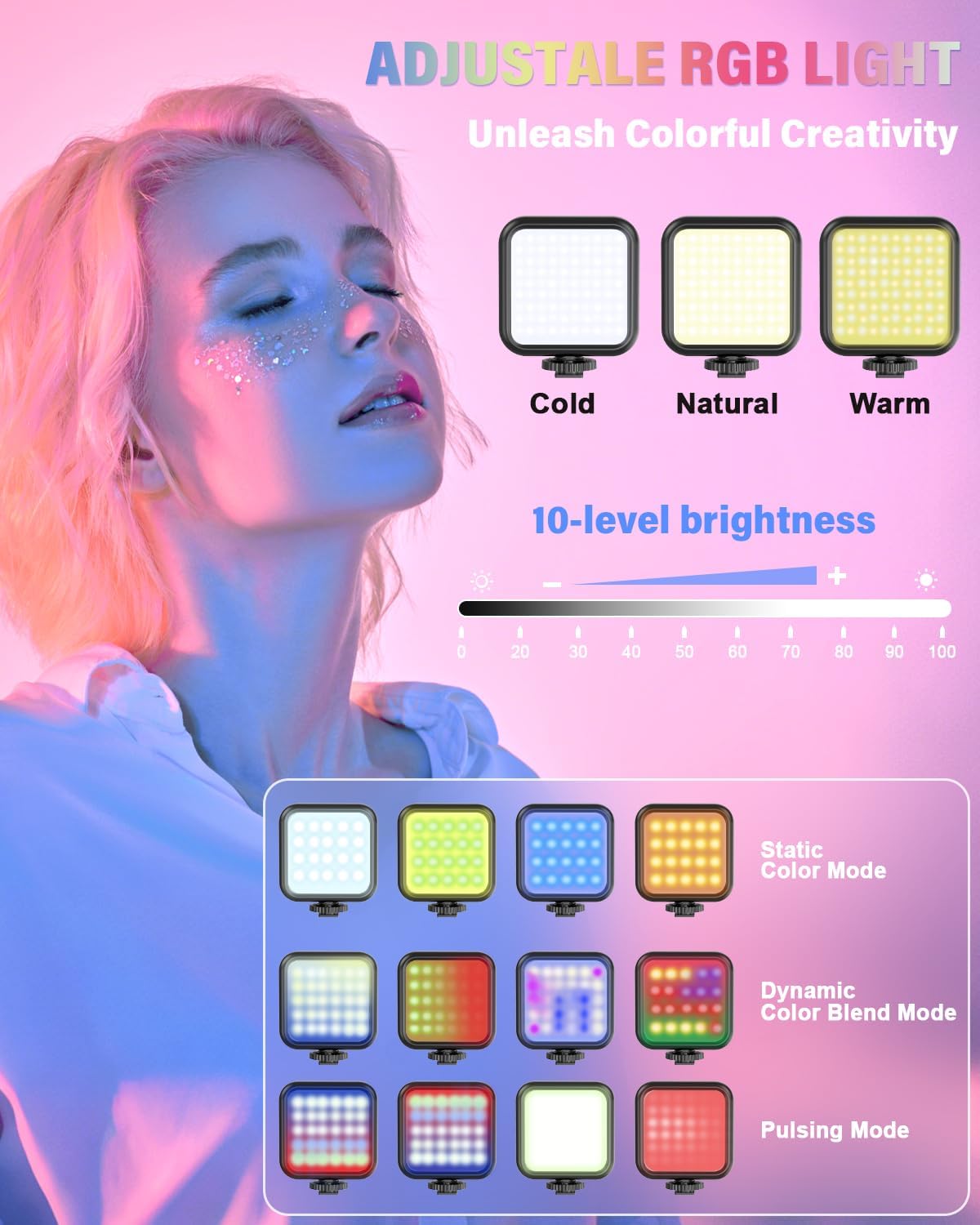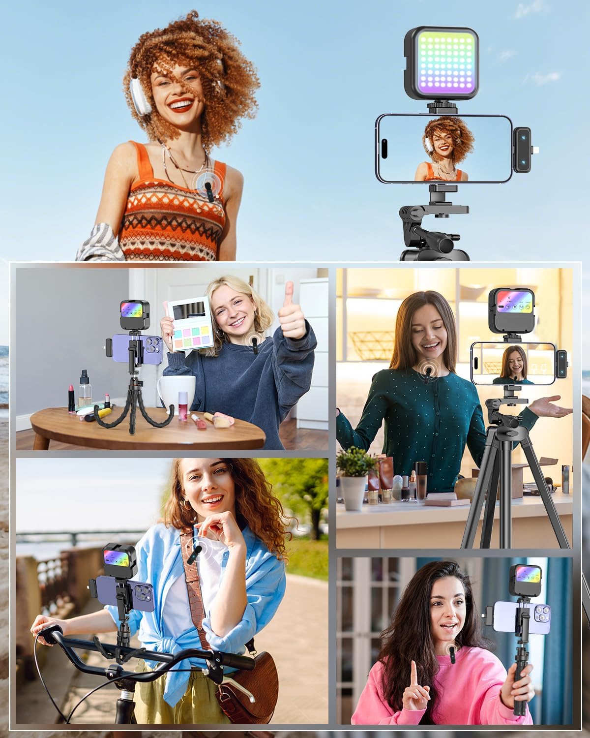 Crystal-Clear Sound&Adjustable RGB Lighting: Our wireless microphone delivers clear, crisp sound, making sure your voice is heard loud and clear. With a long-range transmission and easy-to-use design, you can move around freely while recording, knowing that your audio will be perfect every time. Fine-tune your setup with pro-grade lighting—10 brightness levels and 6 modes. Cold, Warm, or Natural tones ensure accurate skin tones, while RGB modes (Solid, Gradient, Flash) set the mood