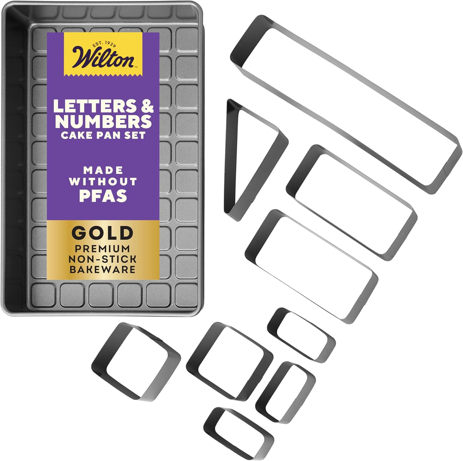 Celebrate birthdays, anniversaries, graduations and more with the Wilton Gold Premium DIY Cake Numbers and Letters Set. This innovative bakeware includes everything you need to create custom number and letter cakes with ease. Made of warp-resistant cold-rolled steel and coated with Wilton’s signature non-stick surface, each component offers reliable performance and easy cleanup. Free from PFAs, this set promotes safer baking without sacrificing quality or convenience. With versatile inserts and a reusable design, you can use this kit year after year for personalized cakes that wow. The guide and cutting grid make setup intuitive, and the entire set is oven safe up to 450°F. Dishwasher safe, though hand washing is suggested for long-term care. Perfect for milestone moments, this set empowers bakers to craft truly memorable desserts. At Wilton, we are champions of adding sparkle and fun to any occasion. From an extensive array of baking and decorating products to skill-building classes, it’s our treat to help you create sweeter moments.