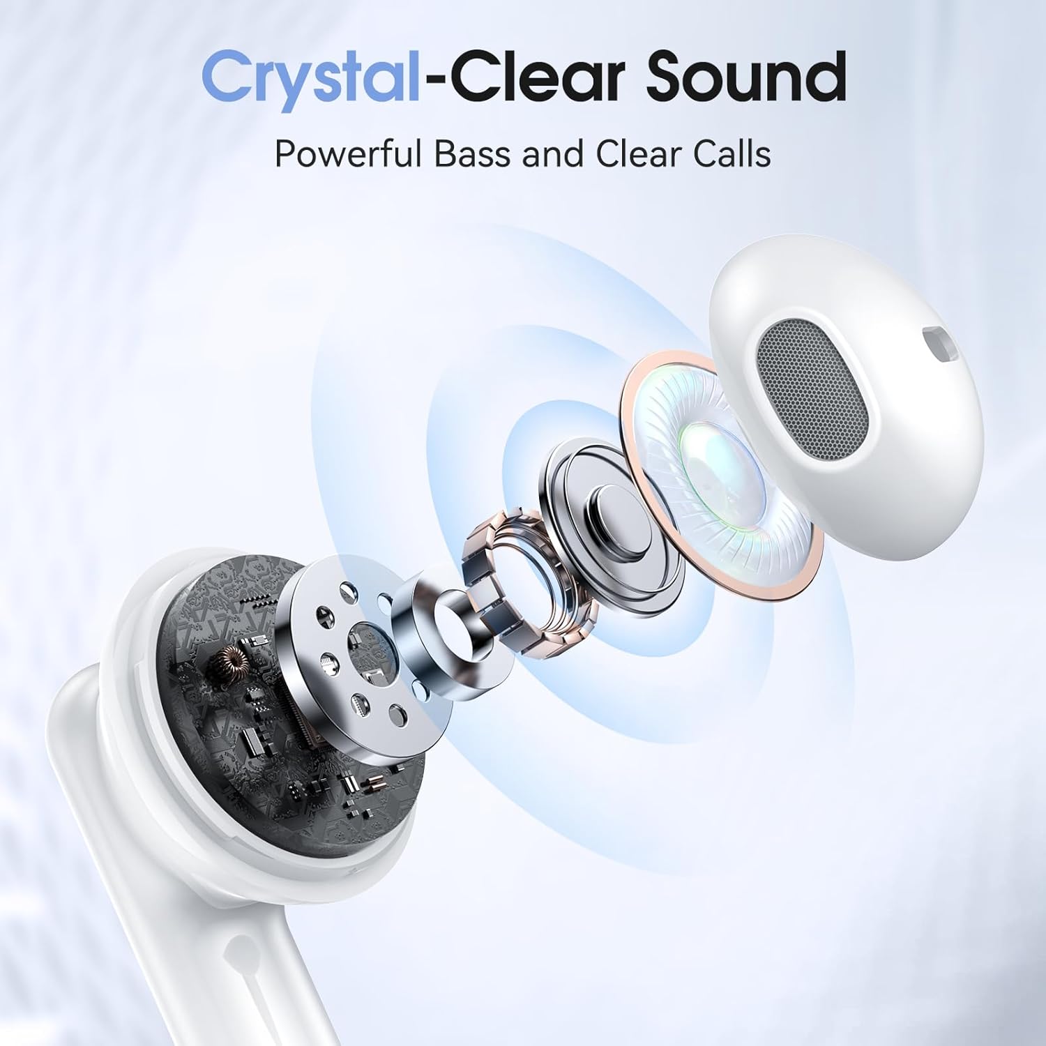 Customers find these wireless earbuds deliver good sound quality, with one noting they hear calls perfectly, and appreciate their long battery life of up to 50 hours. The earbuds are comfortable to wear with an ergonomic fit, connect easily to phones and tablets, and offer excellent value for the price. Customers like their functionality, with one mentioning they work well for both iOS and Android systems.