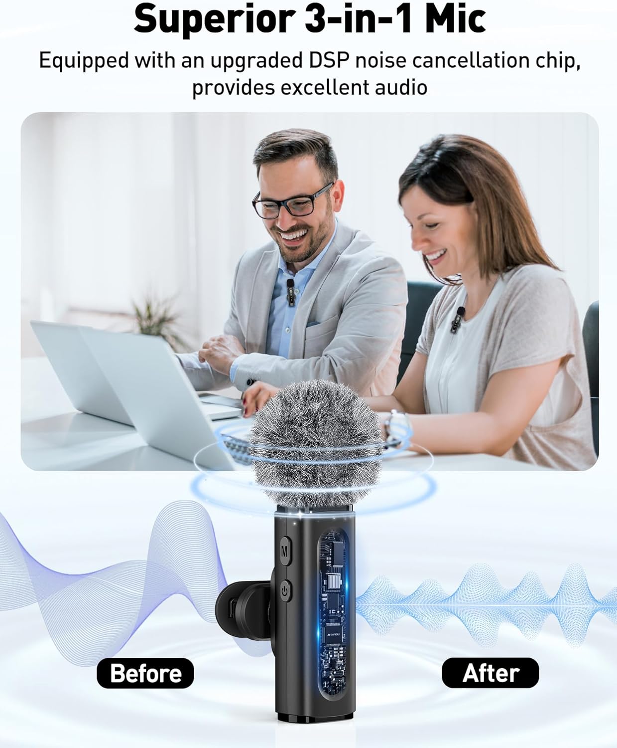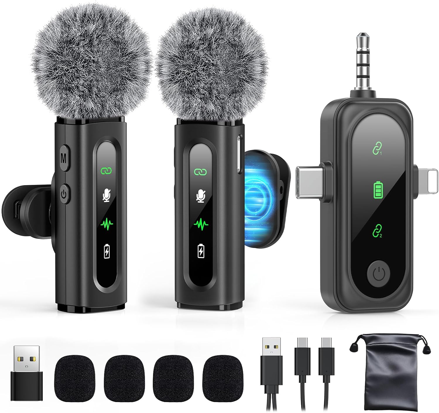 Superior Sound with Active Denoise: Experience exceptional sound clarity with the GoorDik 3-in-1 wireless lavalier mic featuring advanced active denoise technology. With dual noise reduction modes – noise reduction mode and original sound mode. The wireless clip-on mini mic is equipped with 2 furry outdoor microphone windscreen muffs and 4 extra foam mic covers, ensuring crystal-clear audio even in noisy and windy environments.