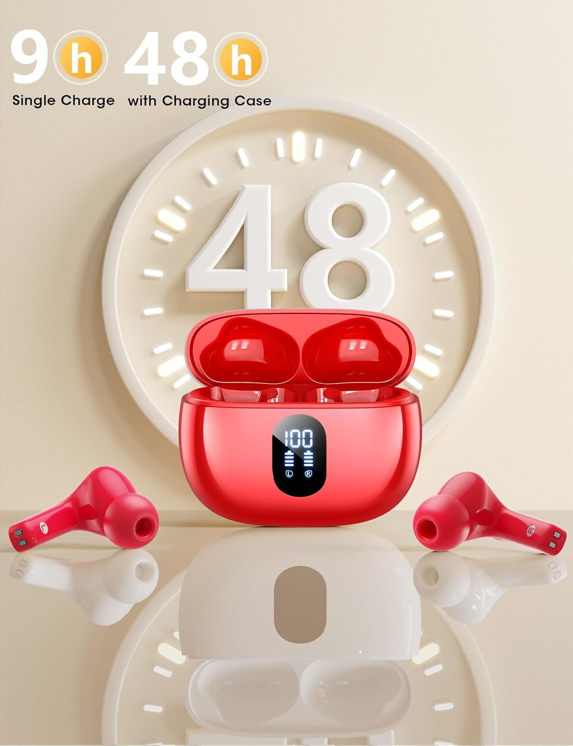 T18 Wireless Earbuds – 48 Hours Battery Life for Uninterrupted Listening: Extend your listening time with the T18 wireless earbuds, which offer up to 9 hours of playback on a single charge. When paired with the LED display charging case, you can enjoy up to 48 hours of battery life. Additionally, the dual LED digital power display shows the remaining battery life of the case and the charging status of the earbuds, allowing you to monitor the power levels in real time and efficiently plan your usage of the wireless Bluetooth earbuds. You’ll never have to worry about running out of power