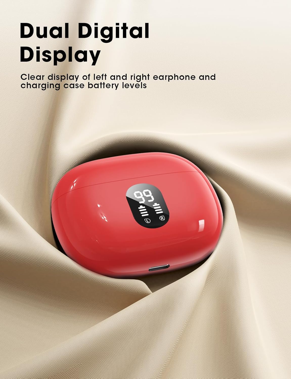 Fast Charging – Charging Case for Wireless Earbuds: The wireless bluetooth headphones is equipped with a Type-C port for faster charging. You can use the included USB Type-C cable of Bluetooth earbuds to charge the case with any compatible charging adapter (not included). The dual LED digital power display shows the remaining battery life of the case and the charging status of the earbuds